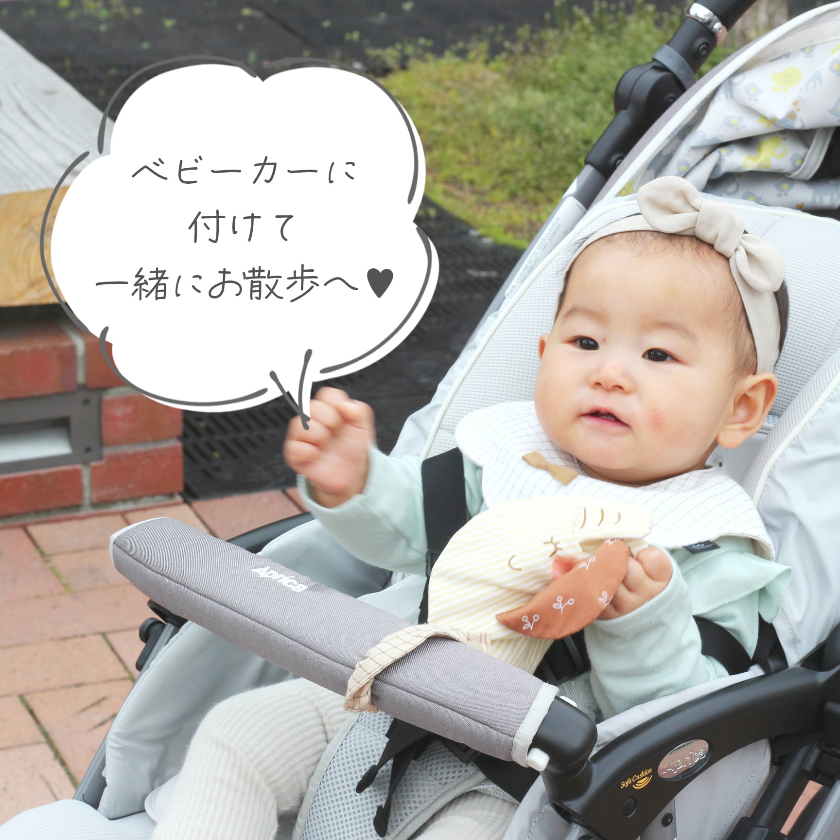 また、ベビーの手首に付けておくと手を動かして一人で遊んでくれます♪