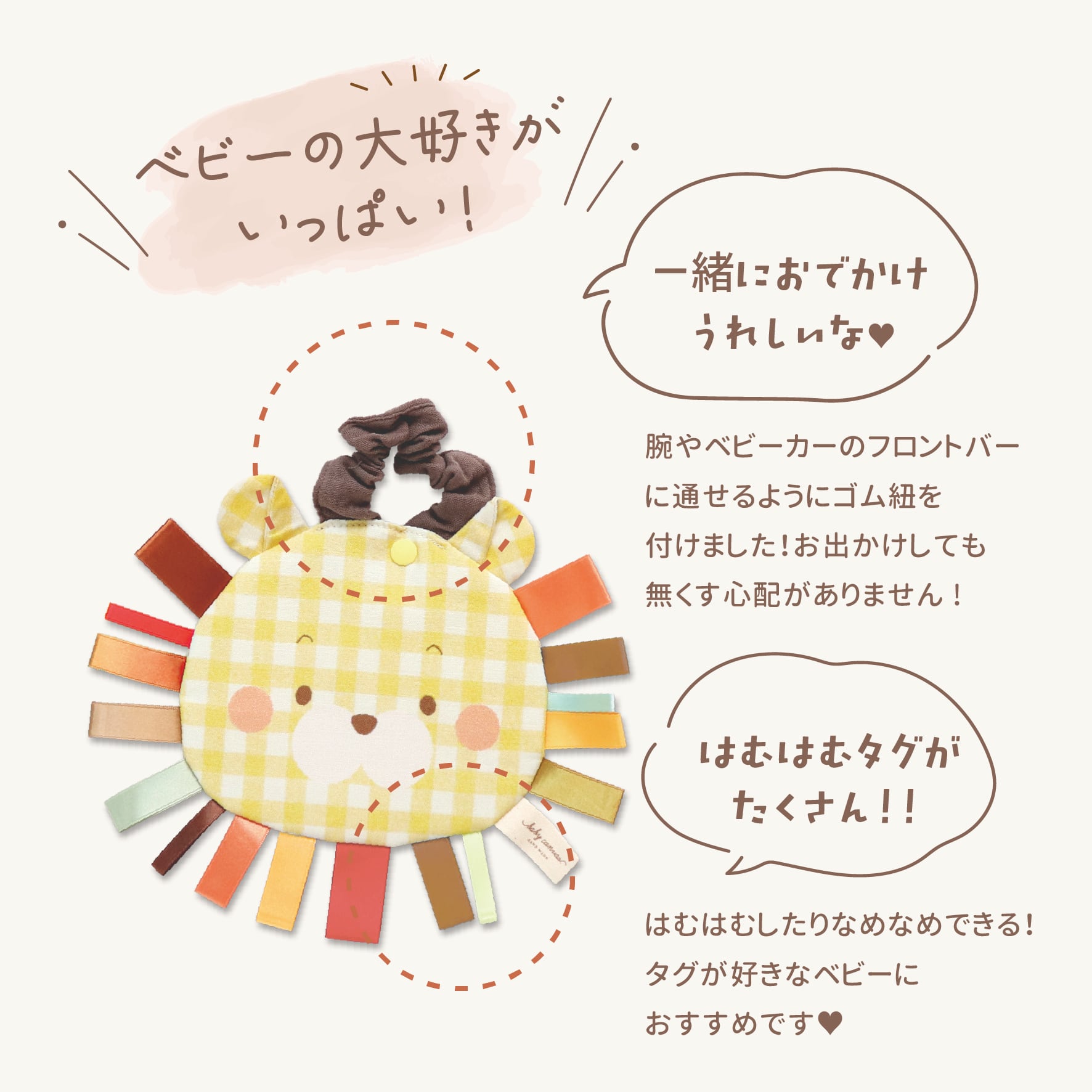 ●ライオンさんはタグがたくさん付いているのでタグ好きなベビーにおすすめ!